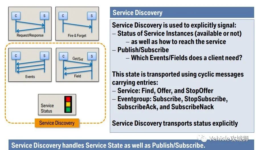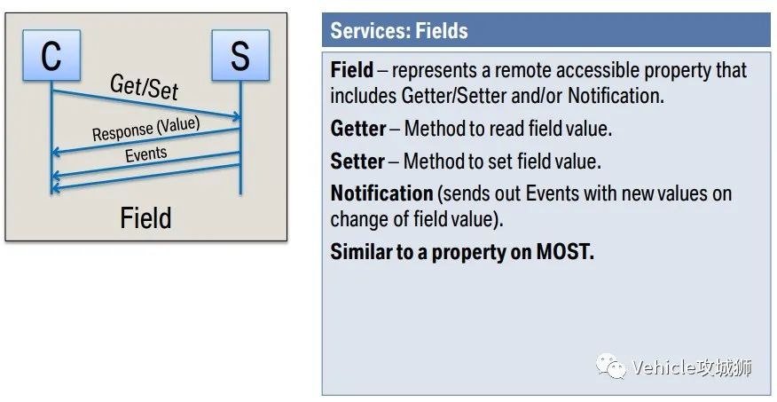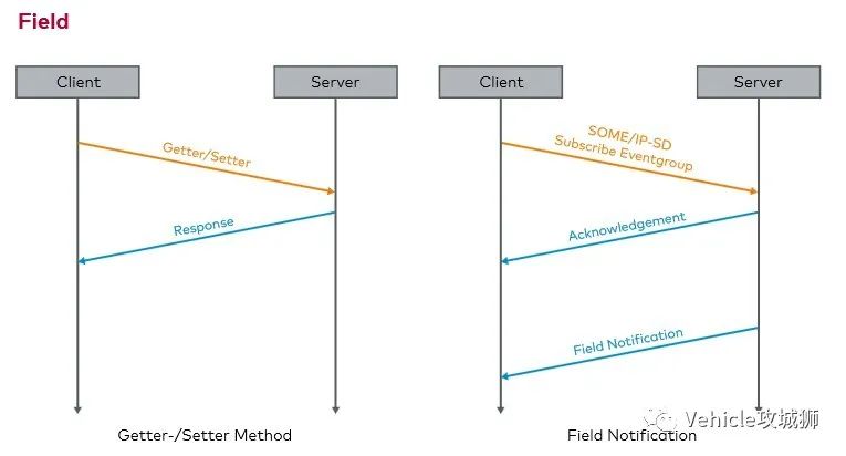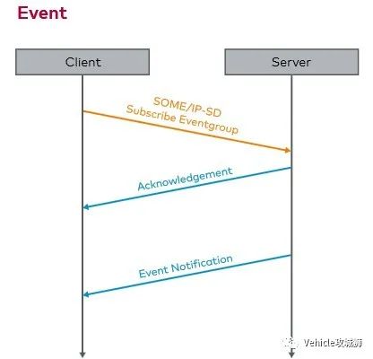 从上面可看到Notification分为Event和Field 两类,这两类通知都需要首先使用SOME/IP-SD(Service Discovery)来进行服务订阅,然后才能发布通知。