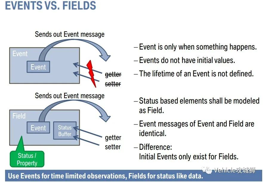 区别在于,Event是某一时刻的快照,只是事件通知,而Field除了事件通知之外,还具有Getter和Setter的功能,即对信息进行读写的操作。
