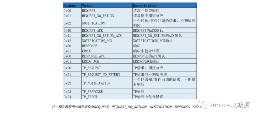 Message Type用来识别不同的消息类型,目前类型如下图,其中TP用来表示分包的报文:
