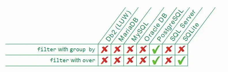 SQLite对over子句的支持与其他数据库非常接近。唯一值得注意的限制是range语句不支持数字或间隔距离(仅支持current row和unbounded preceding|following)。在发布sqlite 3.25.0时,SQL Server和PostgreSQL具有同样的限制。PostgreSQL 11消除了这一限制。
