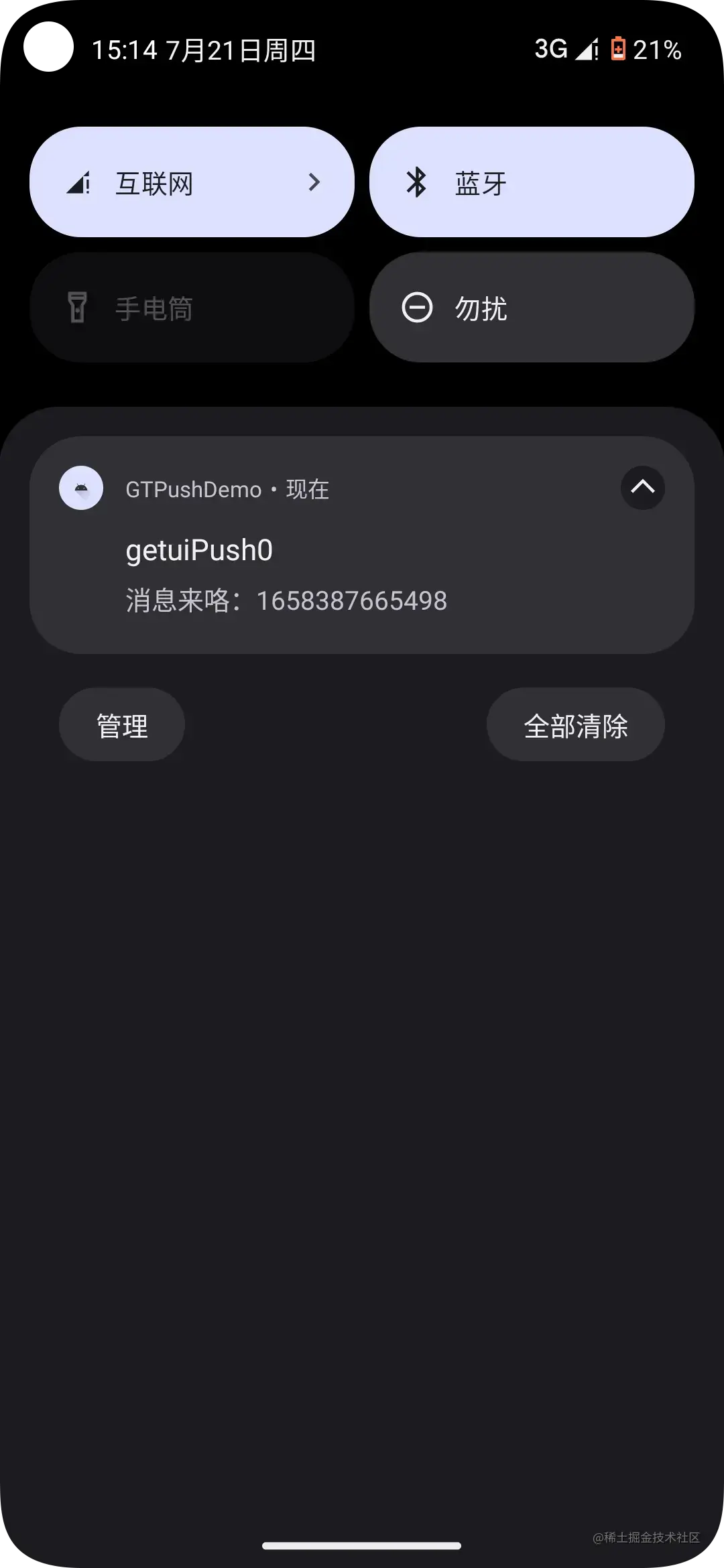 以上是用户点击“允许”App推送的情况。当然,用户也有可能点击“不允许”。值得注意的是,一旦被用户拒绝授权,下次系统将不会再出现权限申请的弹窗。
