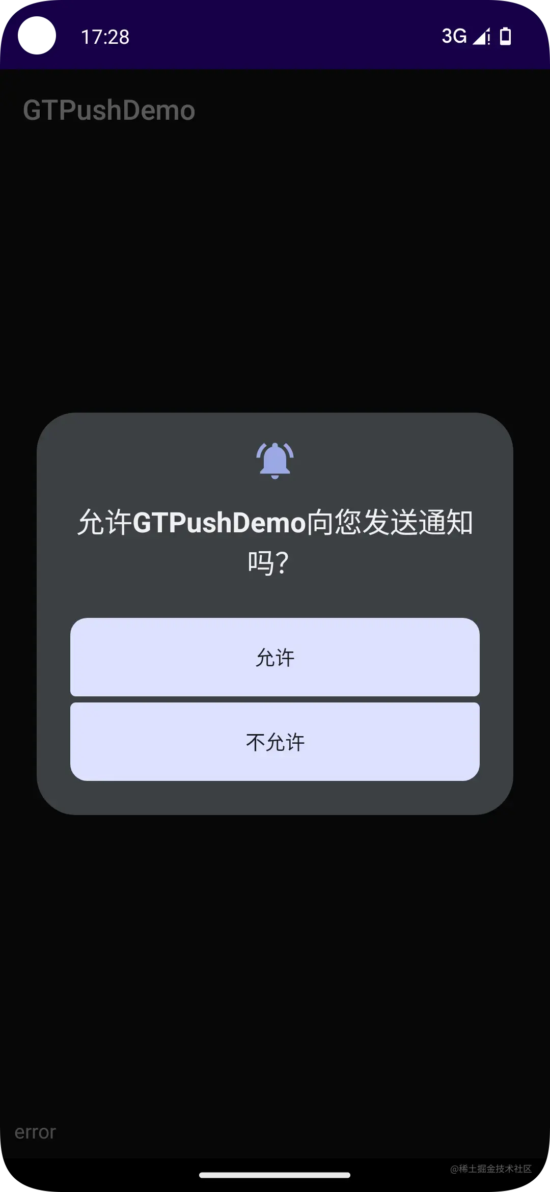 如下图,当App使用通知栏功能时,系统将自动弹出授权弹窗: