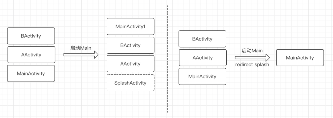 经过分析,我们发现在这部分系统上,即使通过 activity-alias+targetActivity 方式将 SplashActivity 指向了 MainActivity,但是在 AMS 侧它仍然认为启动的是 SplashActivity,后续再启动 MainActivity 时会认为之前是不存在 MainActivity 的,因此会再次启动一个 MainActivity。