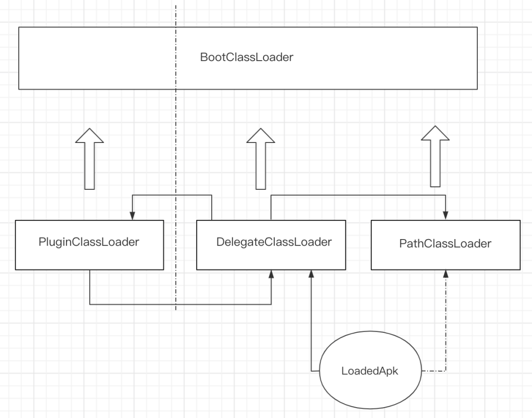 DelegateClassLoader 会持有 PluginClassLoader 的引用,PluginClassLoader 则会持有 PathClasloader 的引用;