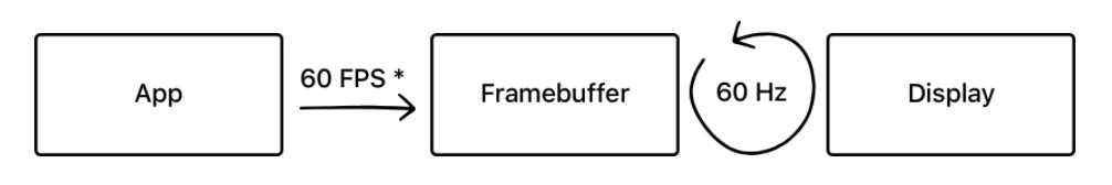 首先来介绍一下离屏渲染的原理。我们正常的渲染流程是:CPU 和 GPU 协作,不停地将内容渲染完成后得到的位图数据放入 Framebuffer (帧缓冲区)中,视频控制器则不断地从 Framebuffer 中获取内容,显示实时的内容。