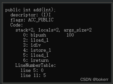 # 使用javap 查看 add 方法被编译后的机器指令