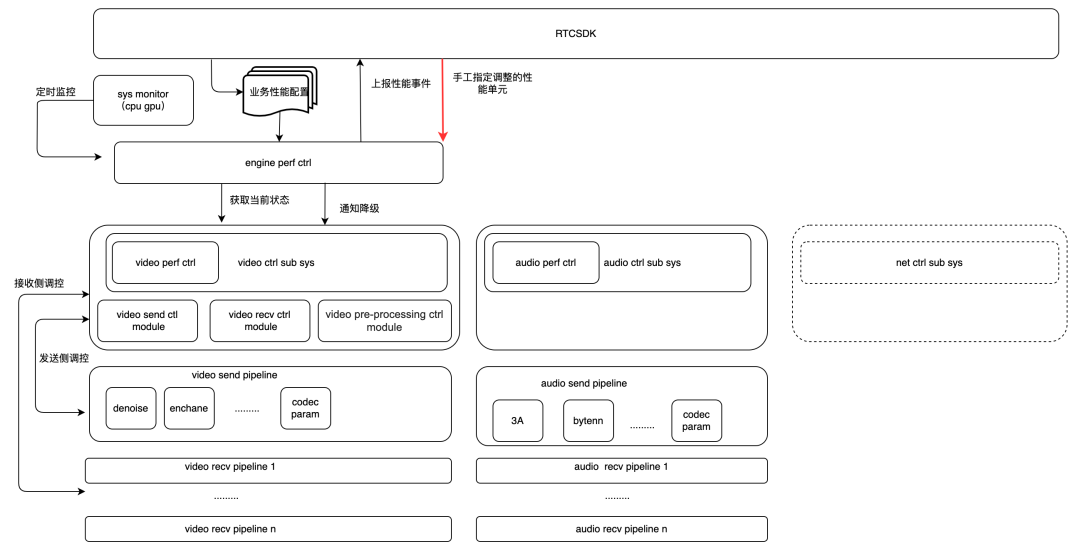 在各业务场景下,会有一些视频前后处理特性,主要目的是为了提升画质,比如:超分 / 降噪 / HDR 等。在性能足够好,并且负载不高的情况下,可以开启这些视频处理特性,提升用户体验。当系统性能瓶颈时,需要适当降级视频处理特性,甚至是关闭特性来确保正常的视频通话。