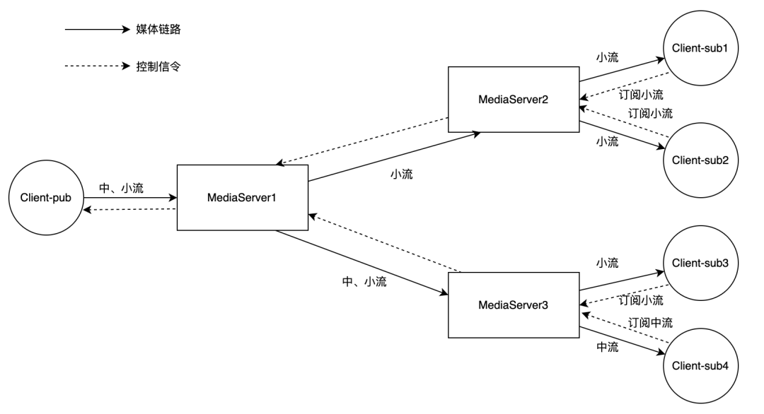 所谓 Simulcast,就是将一个视频源输入编码输出成多个分辨率的视频帧,在发送端编码多路不同分辨率的大小流,下行接收端可以选择订阅其中任意一种分辨率的同源视频流。它可以满足多人通话场景,不同用户对于分辨率的差异化需求。在实际应用中,Simulcast 变得更加灵活多变,发挥的作用也越来越大。除了满足用户差异化的分辨率需求外,还可以有效解决下行弱网/性能问题,提升用户体验。比如在下行用户网络交较差或者性能较差时,可以给用户转发低分辨率的视频,确保用户可以拥有流畅的观看体验。