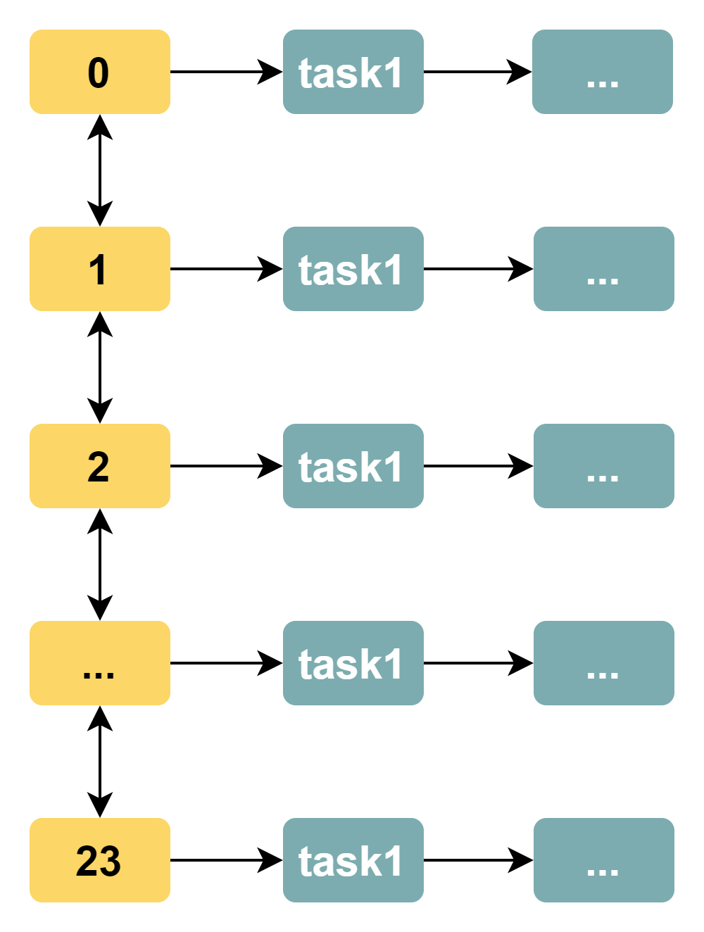 时间轮算法的核心是:轮询时不再遍历所有任务,而是仅仅遍历时间刻度。好比指针不断在时钟上旋转,如果发现某一时刻上有任务,那么就会执行该任务。显而易见,时间轮算法解决了遍历效率低的问题。如果以小时为单位,有 10w 个任务,我们不需要遍历所有任务,仅仅需要遍历 24 个时间刻度。
