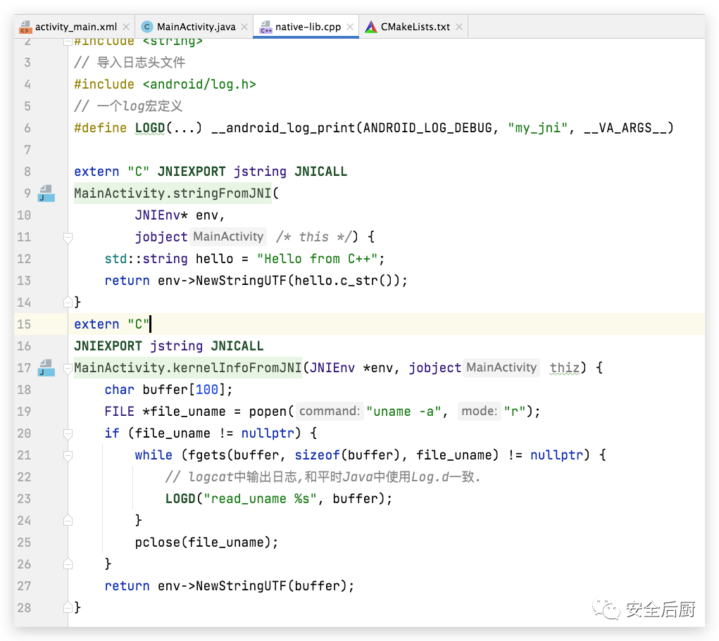 网上可能有各种Android jni从xx到xx,几乎是创建项目,跑起来就完事了。最近也在学习读取系统的一些信息,发现Java层无法做到,部分的实现需要在c层完成,接下里我们使用c/c++去读取系统的信息。