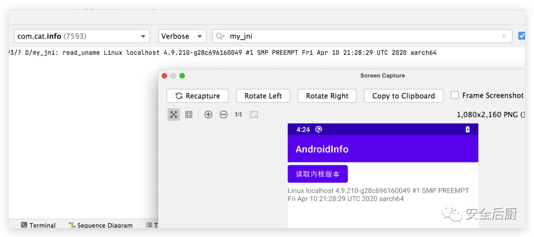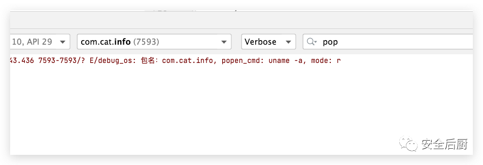 拿到了内核的版本信息后可以检查里面有没有可疑的东西,比如,之前内核加入了KernelSU会在内核commitID后面拼接了KernelSU字符,这样就暴露了信息了。通过在系统popen中增加log打印,可以发现谁在使用它: