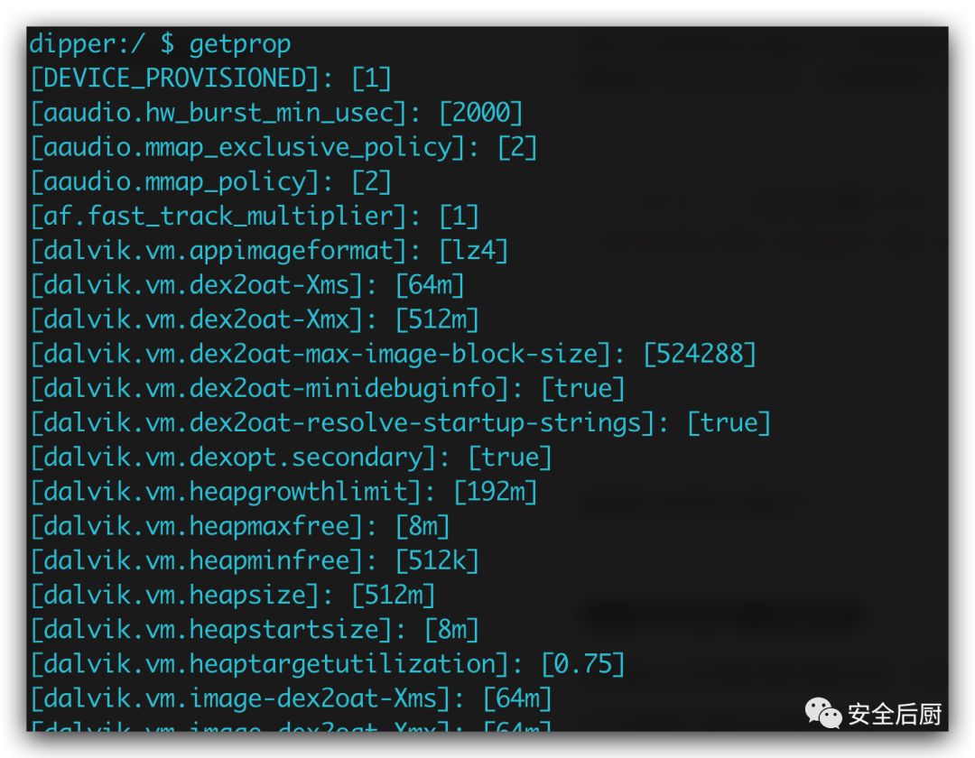 有时候app会收集收集的属性信息,在命令执行getprop能拿到系统的属性。