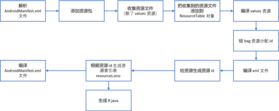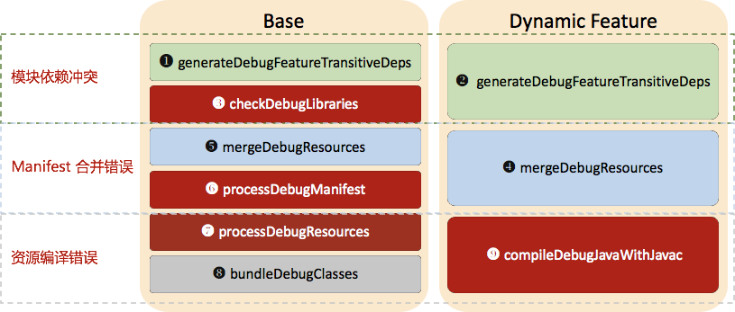 - 7.base 资源编译 编译 base 的资源,生成基础资源包 .ap_ 提供给 feature 作为外部资源包。如果 feature 的 AndroidManifest 里有对于本模块私有资源的访问,由于合并后的 AndroidManifest 位于 base 模块,又引用了 feature 的资源,于是合并出错。