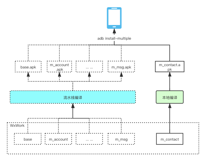 多工程改造为支持动态模块,分包式多 .apk 更能充分发挥并行、缓存的优势,但这更要求企业微信模块化解决计算资源消耗的问题: