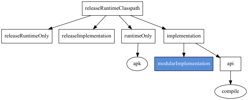比如在 Android Gradle Plugin 中的 Release 版本变种配置,可明显观察区分了编译时和运行时分类:
