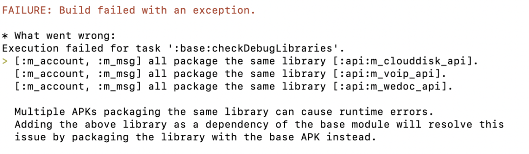 Android App Bundle 会在 base 检查依赖打包是否冲突: