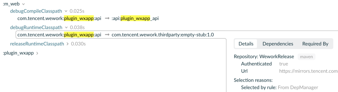 原项目工程结构和依赖配置无需修改,对业务开发和其他插件透明,达到我们解决依赖的目的,同时在 gradle scan 里可以查看到裁减依赖的原因,方便 debug: