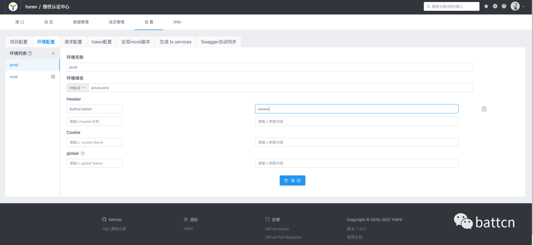 YAPI 可以根据具体情况配置全局Token及不同地址