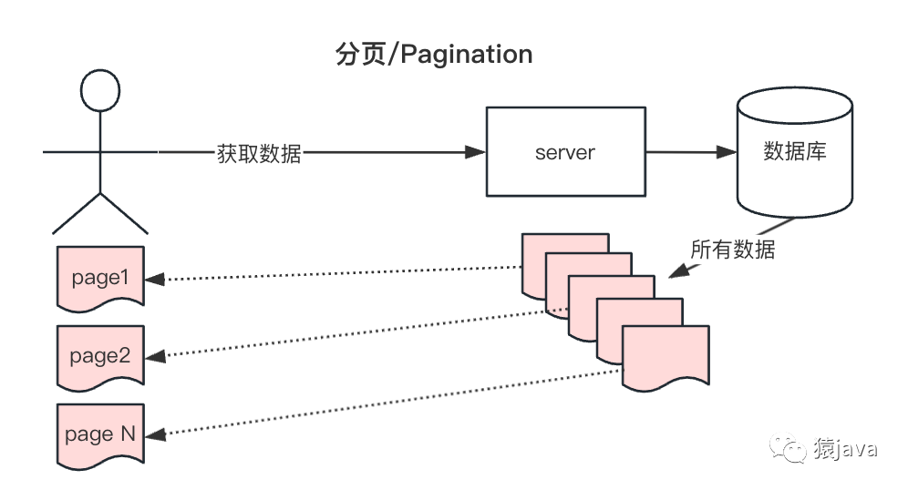 分页(Pagination),是一种常见的数据查询方式,它可以将大量的数据,分成多个页面进行展示,如下图: