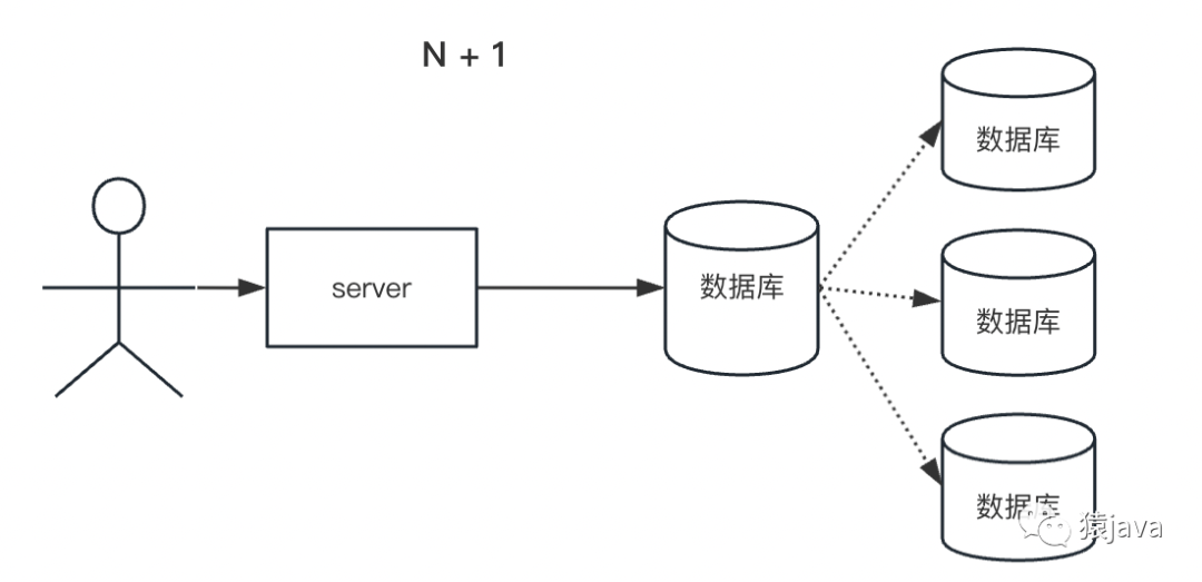 “N+1 问题” 是一个在数据库查询性能优化领域常见的概念,指的是在进行关联查询时,当你需要获取主表中的 N 条记录以及每条记录关联的另一个表中的相关信息时,会导致在获取相关信息时产生额外的查询操作,从而造成额外的负担和性能问题。如下图: