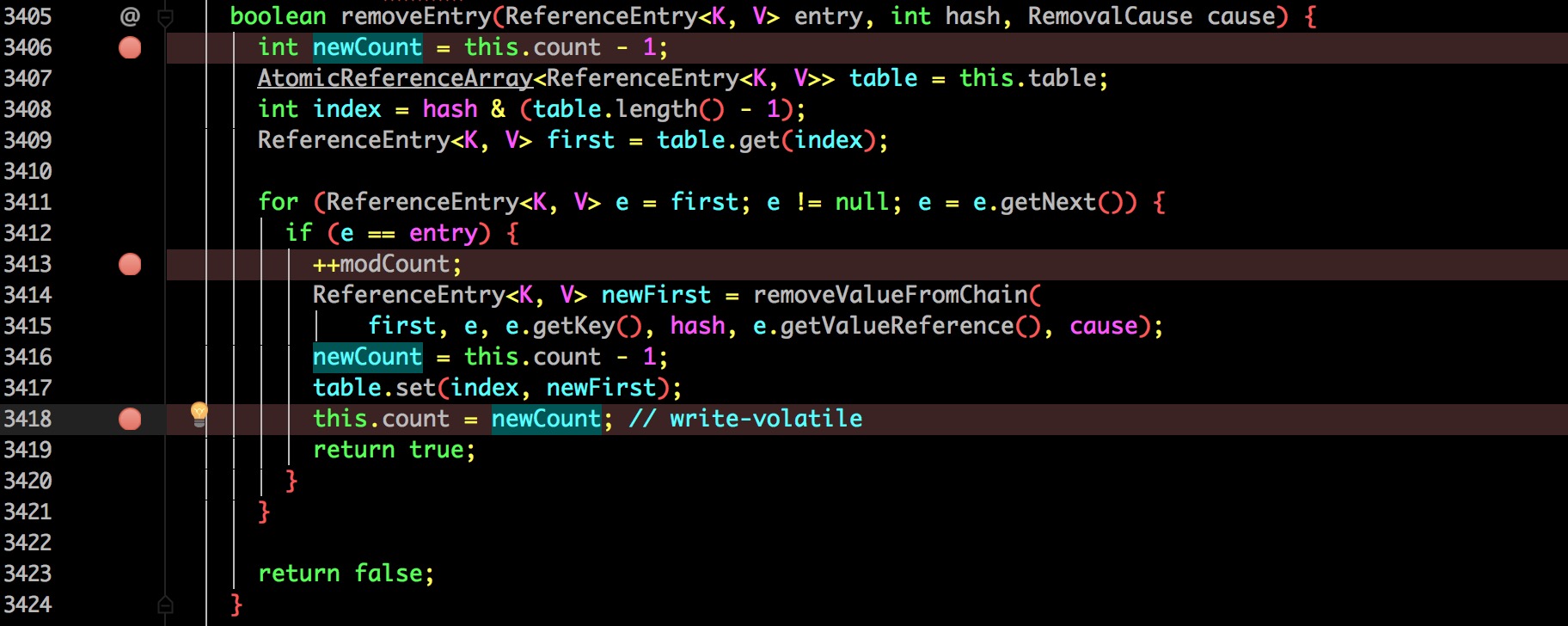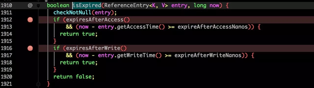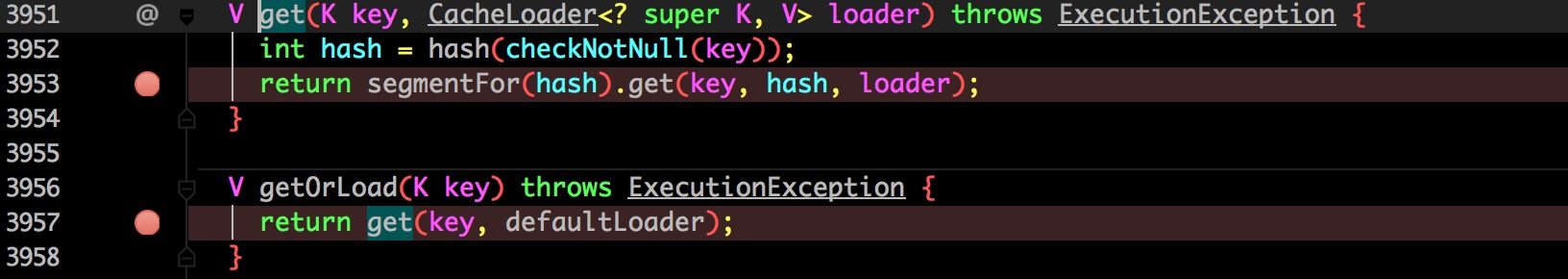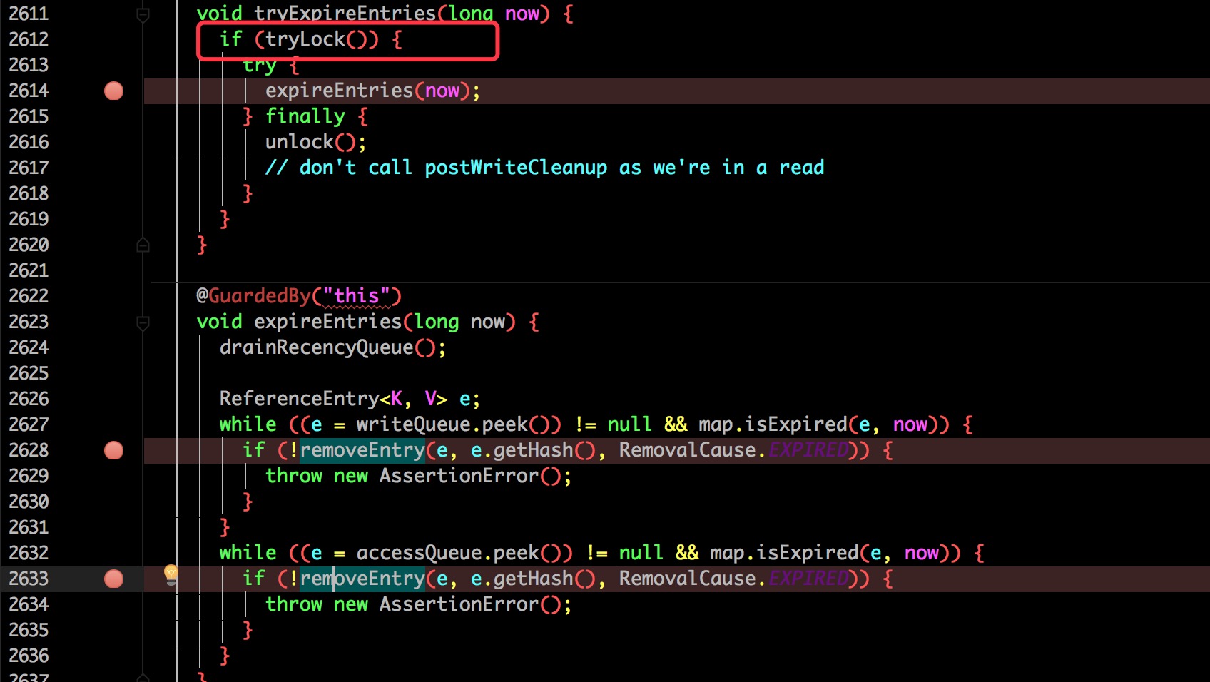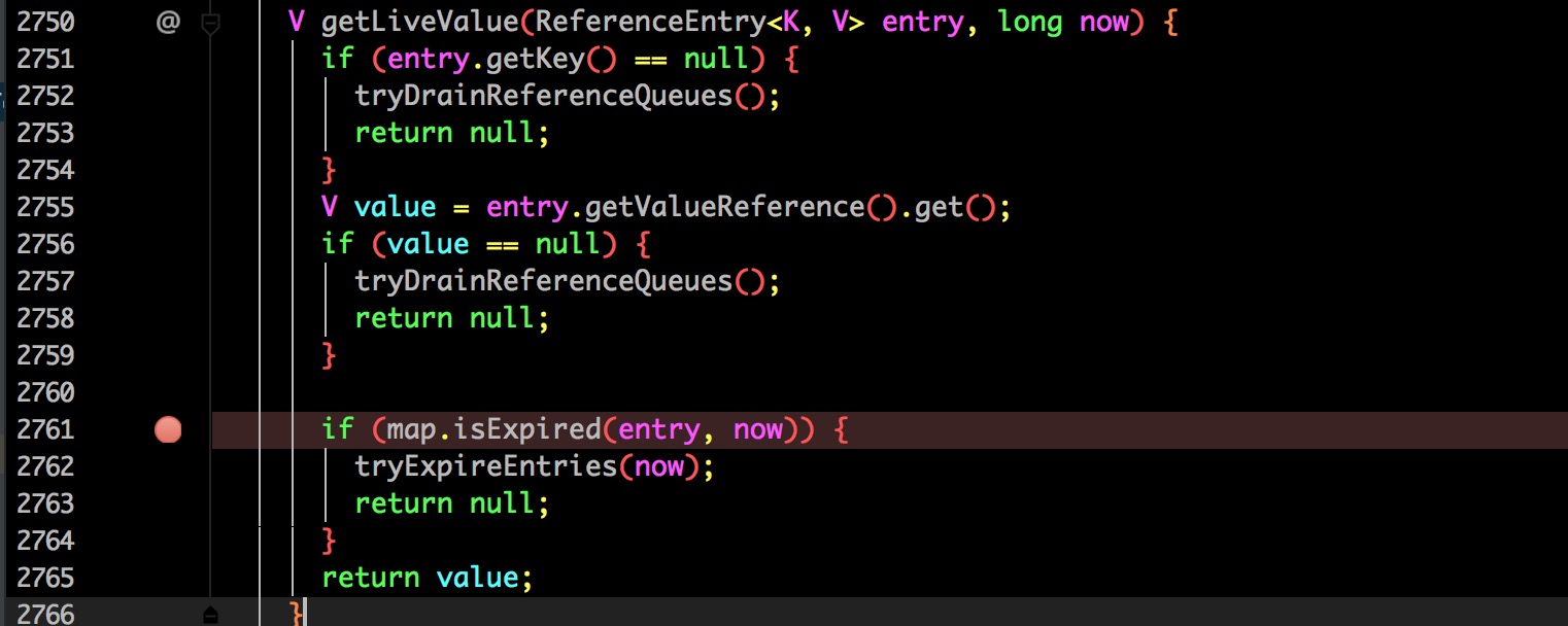 最终会发现在 com.google.common.cache.LocalCache 类的 2187 行比较关键。