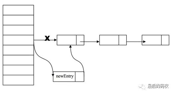 因为每个HashEntry中的next也是final的,没法对链表最后一个元素增加一个后续entry所以新增一个entry的实现方式只能通过头结点来插入了。