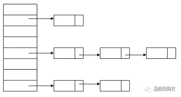 对于哈希表,Java中采用链表的方式来解决hash冲突的。一个HashMap的数据结构看起来类似下图: