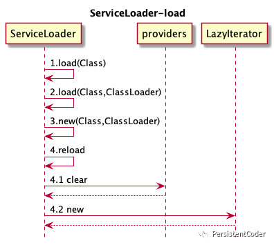 ServiceLoader类静态方法load会将接口定义以及类加载器初始化到内部类LazyIterator懒迭代器中。之所以叫做初始加载,是因为此时只是根据接口和类加载器定义一个懒迭代器,并不真正触发SPI文件的加载。