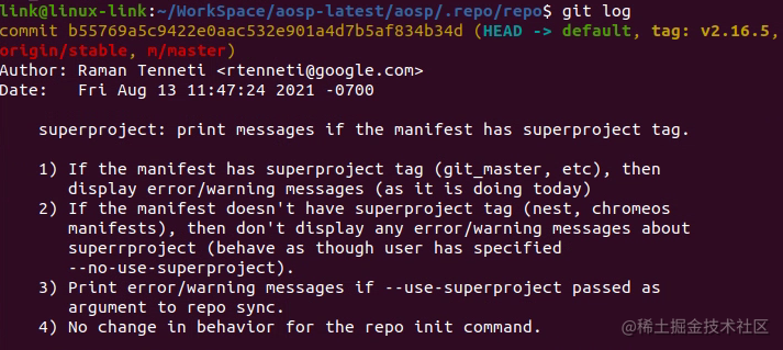 repo sync # 再同步一遍即可得到基于Android 11的完整目录