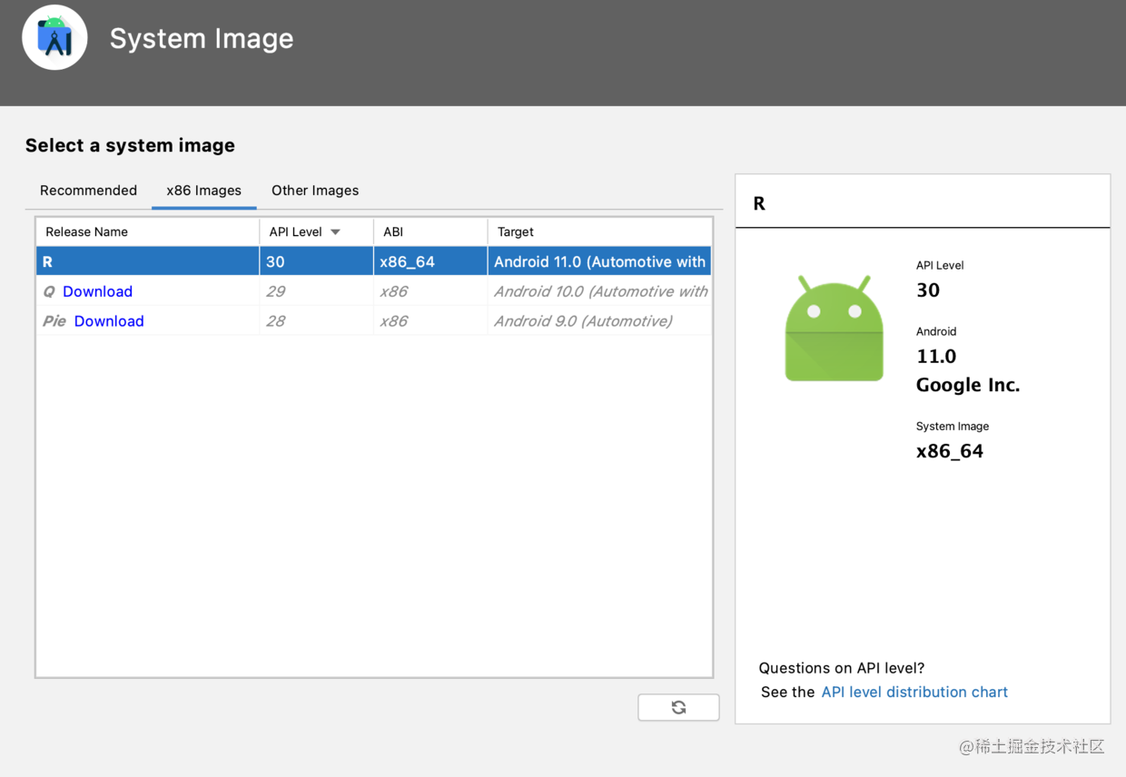- 2.在创建模拟器的时候选择一个你需要的 Android Automotive 镜像