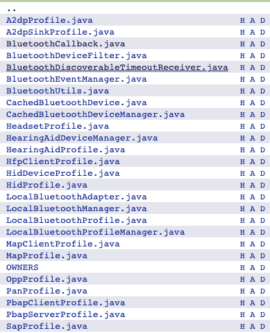 在 Android 的 framework 目录下封装了很多实用的蓝牙组件,不过这些类是 framework 的私有类,并不能通过应用层的Android API直接调用,实际项目中根据需要将这些类移植到应用中再做修改。不建议直接修改 framework 层的代码!这样可能会导致一些原生应用无法正常运行。