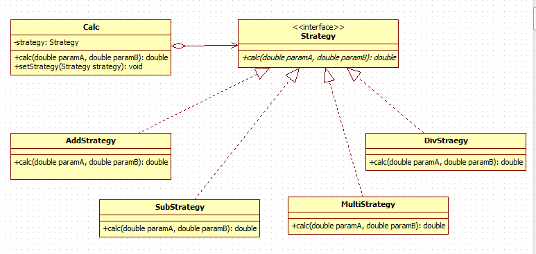 System.out.println("乘法结果是:" + calc(new MultiStrategy(), paramA, paramB));