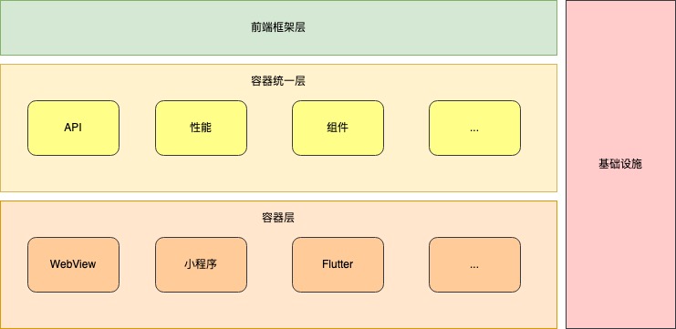 容器统一层是在前端框架和容器层之间的一个层级。它定义了容器提供的基本能力,这些能力就像协议一样,是相对稳定的。
