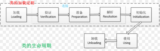 其中类加载的过程包括了加载、验证、准备、解析、初始化五个阶段。在这五个阶段中,加载、验证、准备和初始化这四个阶段发生的顺序是确定的,而解析阶段则不一定,它在某些情况下可以在初始化阶段之后开始,这是为了支持Java语言的运行时绑定(也成为动态绑定或晚期绑定)。另外注意这里的几个阶段是按顺序开始,而不是按顺序进行或完成,因为这些阶段通常都是互相交叉地混合进行的,通常在一个阶段执行的过程中调用或激活另一个阶段。