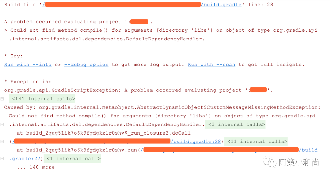 和尚的历史项目中有个别 Module 中未及时修改 compile(),而 Gradle 升级之后已完全弃用 compile();