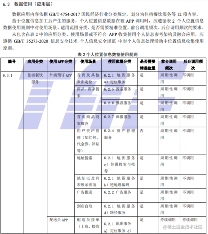 - 最后一个问题,怎么确定应用场景时需要精确位置还是粗略位置呢?其实并不是依靠纯主观判断,这块是有行业标准的。在我们之前讨论的 还在见招拆招?先看懂 APP 个人信息保护治理机制 中,提到过一个标准 团体标准《APP 收集使用个人信息最小必要评估规范》共 17 项。其中对于位置信息的获取有明确的标准和案例,例如: