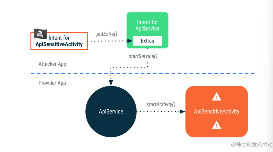 - 以 Android 11 或更低版本为目标版本:系统不会执行 Intent,并在 logcat 提示: