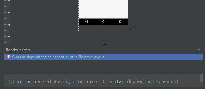 布局文件的异常:Exception raised during rendering: Circular dependencies cannot exist in RelativeLayout。什么意思呢?循坏依赖不能在RelativeLayout中出现的,就是说你的RelativeLayout里面的控件肯定存在了两个我依赖你你依赖我的,比如( android:layout_above, android:layout_below)解决方法很简单,把其中一个改掉,然后观察一下你的布局文件有没有乱掉,乱掉重新改一下吧。