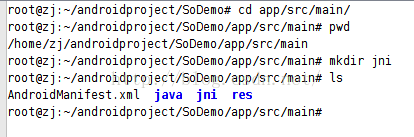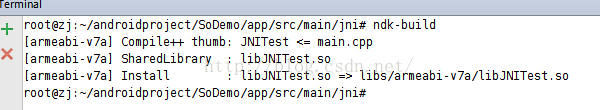 打开android stdio的控制台窗口,进入jni路径,运行命令ndk-build: