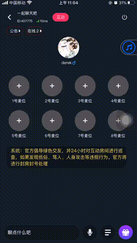- 场控能力:房间上麦、闭麦、抱麦、踢人等功能。